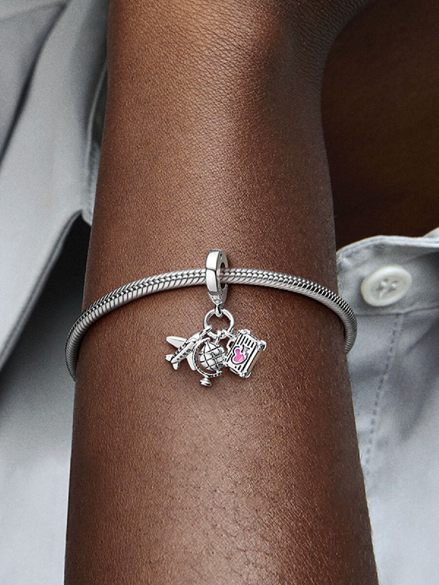 It's time to pack your bags. This 3-in-1 sterling silver charm is every travel lover’s dream. An aeroplane, a world globe and a suitcase – complete with grooved lines and enamel details – together represent ...