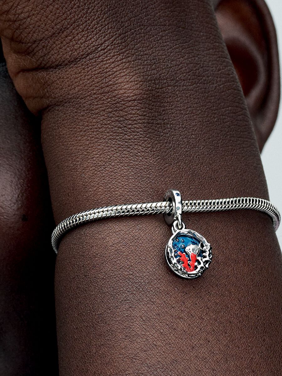 Channel the beauty found Down Under. Blue enamel detailing offers you a glimpse of fish blowing bubbles in the ocean on the charm's first sterling silver disc. On the second disc – bright red coral. A charm ...